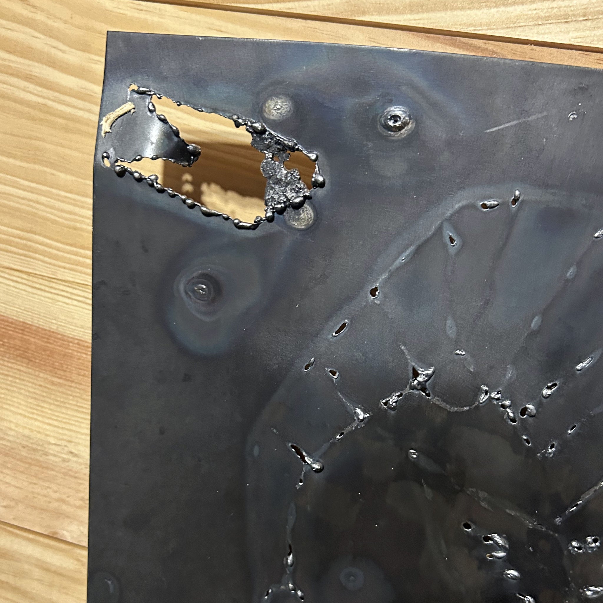 Эта настенная скульптура выполнена из тщательно обработанного и вырезанного стального листа.