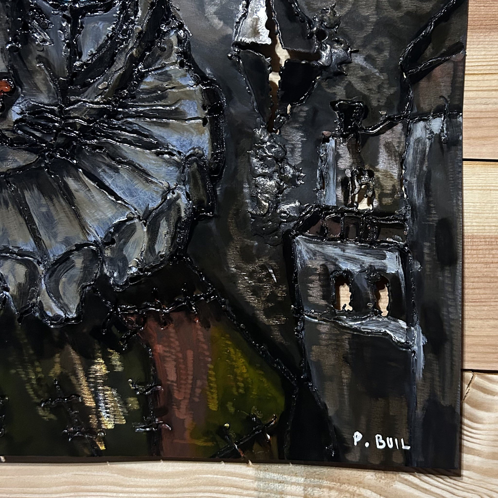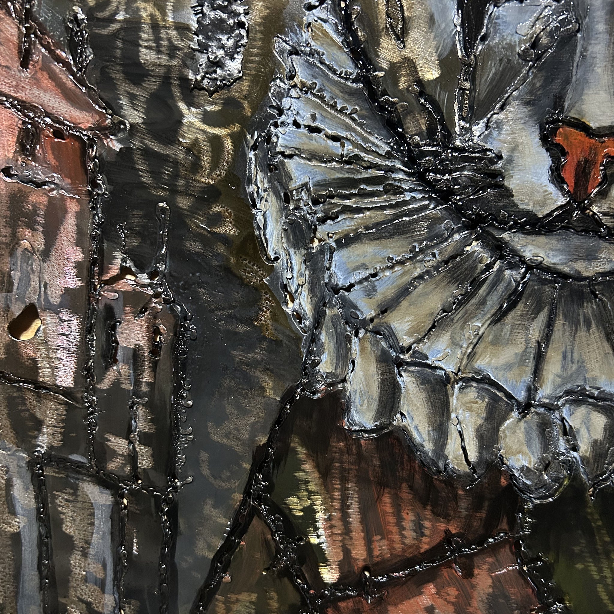 Это произведение сочетает скульптуру и живопись, предлагая завораживающую игру света в зависимости от угла обзора. Уникальное, поэтичное и выразительное творение.